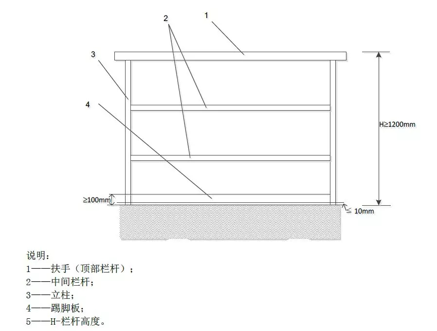 1、距離墜落高度基準面 0.5 m 以上的監測平臺及通道的所有敞開邊緣應設置防護欄桿,防護欄桿的高度應≥1.2 m。